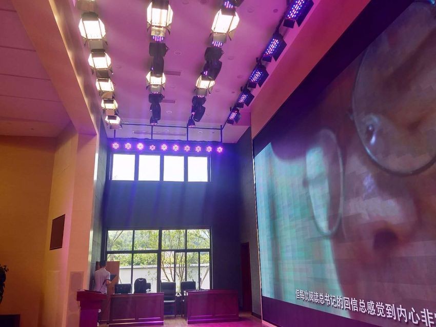 将光束灯,PAR 灯,面光灯等 DMX 灯具连接在一起,与 DMX 智能面板连接。采用电脑软件编程,编好社区活动中心常用的灯光场景,并存储到 DMX 智能面板上,从而实现:客户一键进行灯光场景切换,也可以使用平板电脑,手机 APP 进行控制,极大地方便客户操作。