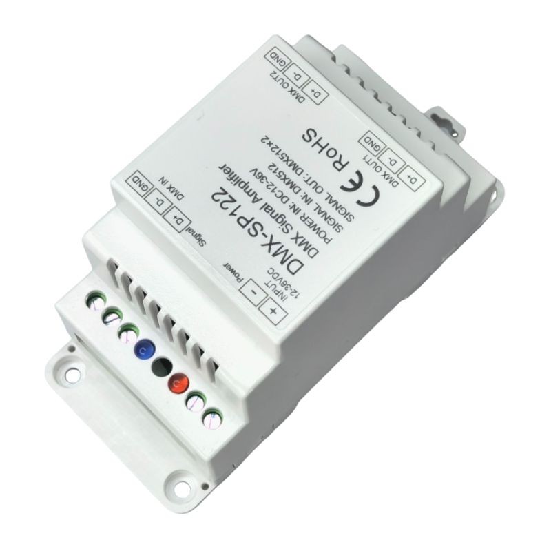 • 输入电压:12/36V DC • DMX信号:一进两出 • 带电源与信号指示灯,直观显示 • 输入与输出端口,均采用光电隔离 • 隔离耐压3000V DC • DMX512信号放大,延长信号传输距离 • 端口间相互独立,不共地 • DMX信号线接错保护 • 导轨式外壳,方便安装