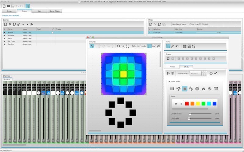 • 支持各种LED: 单色, 色温, RGB, RGBW, RGBWY • 支持各种DMX灯具: 染色灯,激光灯,图案灯,音乐喷泉,升降球 • 支持输出联机/脱机控制DMX512灯具 • 实时输出灯光效果,所见即所得 • 支持自定义灯库 • 支持 Easy View 3D 模拟,离线编程 • 多步编程,精确控制每一个灯 • 支持脱机场景,一键下载 • Win10/MacOS 操作系统,多国语言 • 支持 USB / 网络连接编程
