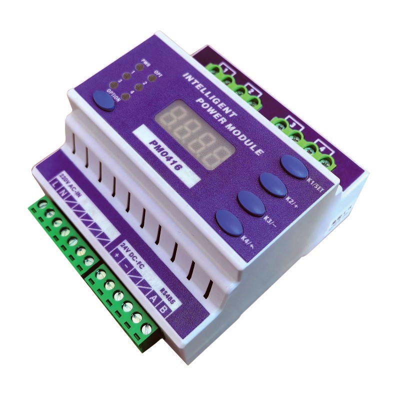 • 输入电压:220VAC • 输出规格:4 * 20A/250VAC • 通讯方式:RS485,标准Modbus-RTU通讯协议 • 数码显示地址,参数状态 • 通过按键设置参数,可手动控制回路 • 协议可全开、全关,单开、单关 • 可设置延时开关,上电模式 • 可设置波特率 • 消防联动,可设定强开强关 • 产品尺寸:90 * 104 * 66mm • 35mm 标准导轨安装