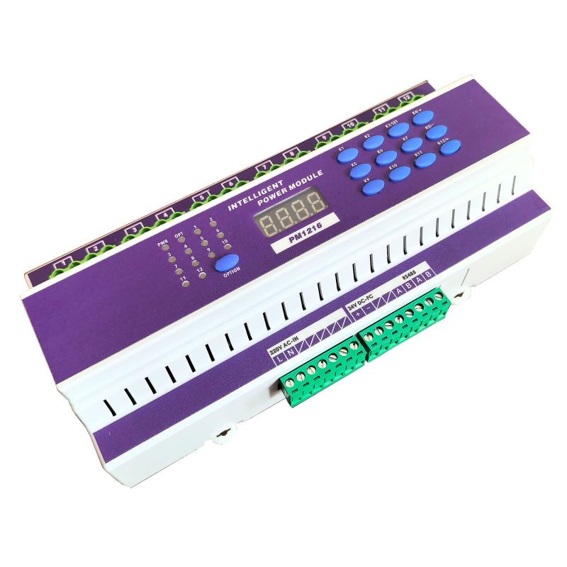 • 输入电压:220VAC • 输出规格:12 * 20A/250VAC • 通讯方式:RS485,标准Modbus-RTU通讯协议 • 数码显示地址,参数状态 • 通过按键设置参数,可手动控制回路 • 协议可全开、全关,单开、单关 • 可设置延时开关,上电模式 • 可设置波特率 • 消防联动,可设定强开强关 • 产品尺寸:216 * 104 * 66mm • 35mm 标准导轨安装