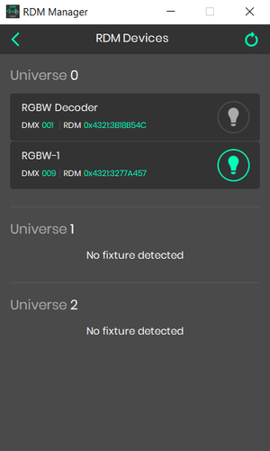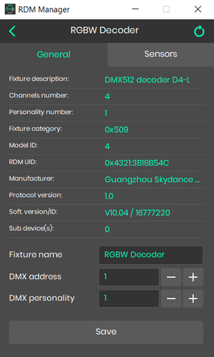 • 支持带RDM功能的灯具管理 • 支持 USB / 网络连接控制 • 支持读取DMX地址,参数,查看传感器参数 • 支持修改DMX地址,特性参数 • 支持亮灯测试 • Win10/MacOS 操作系统
